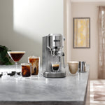 Avec Dedica Duo, découvrez la praticité, la polyvalence et le design italien élégant dans un format compact inégalé.  Préparez des boissons chaudes, glacées et infusées à froid Avec trois recettes prédéfinies : expresso, double expresso et infusion à froid, personnalisez vos boissons chaudes et glacées préférées selon vos préférences à chaque fois.