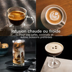 Équipez votre plan de travail de tout le nécessaire pour devenir votre propre barista : porte-filtre, tasseur professionnel, mesurette et paniers-filtres simples et doubles inclus. Infusion à froid en quelques minutes