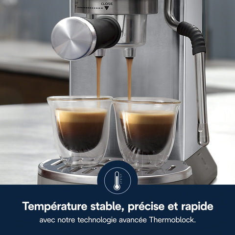 Extraction optimale.  Obtenez des résultats dignes d'un café à chaque fois grâce à la pompe professionnelle qui délivre un expresso extrait avec expertise pour des expressos riches, des lattes glacés, des cappuccinos, des espressos martinis et même des infusions à froid.